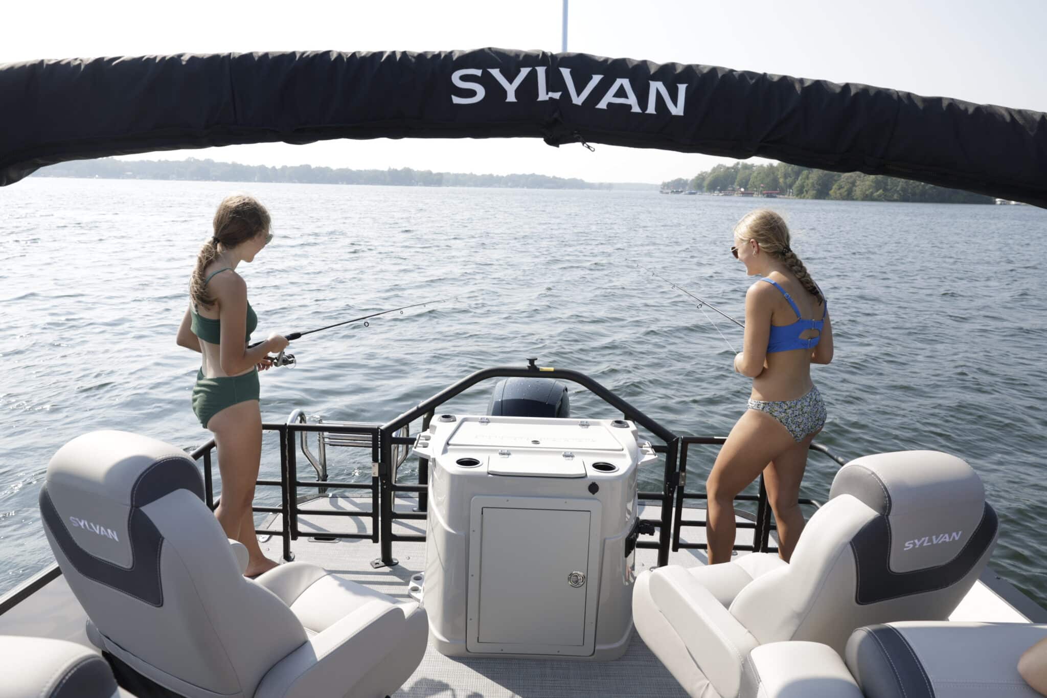 The Sylvan L-Series Fish layout delivers the perfect blend of relaxation and fishing functionality. Featuring a port-side back-to-back lounger, it offers a comfortable space to unwind while cruising or watching the action on the water. At the rear, a fully equipped fishing station includes a filet table, livewell, rod holders, and two dedicated fishing chairs, giving anglers everything they need for a productive day. With its thoughtful design, the L-Series Fish provides versatility, comfort, and serious fishability in one refined pontoon.