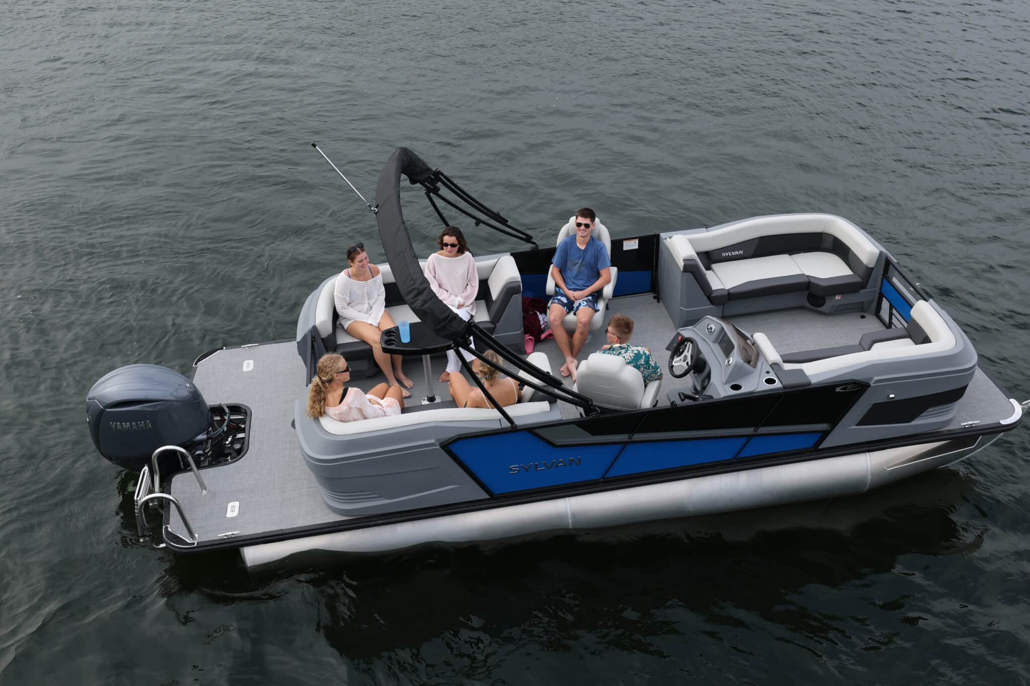 The Sylvan R Series LZ layout offers three inviting conversation areas designed for socializing and relaxing on the water. Bow couches provide a spacious front lounge for chatting or enjoying the view, rear couches create a comfortable area for entertaining family and friends, and the side-by-side bucket helm chairs allow the captain and co-captain to join the conversation while piloting. This thoughtful layout ensures versatility, comfort, and seamless interaction for everyone aboard.