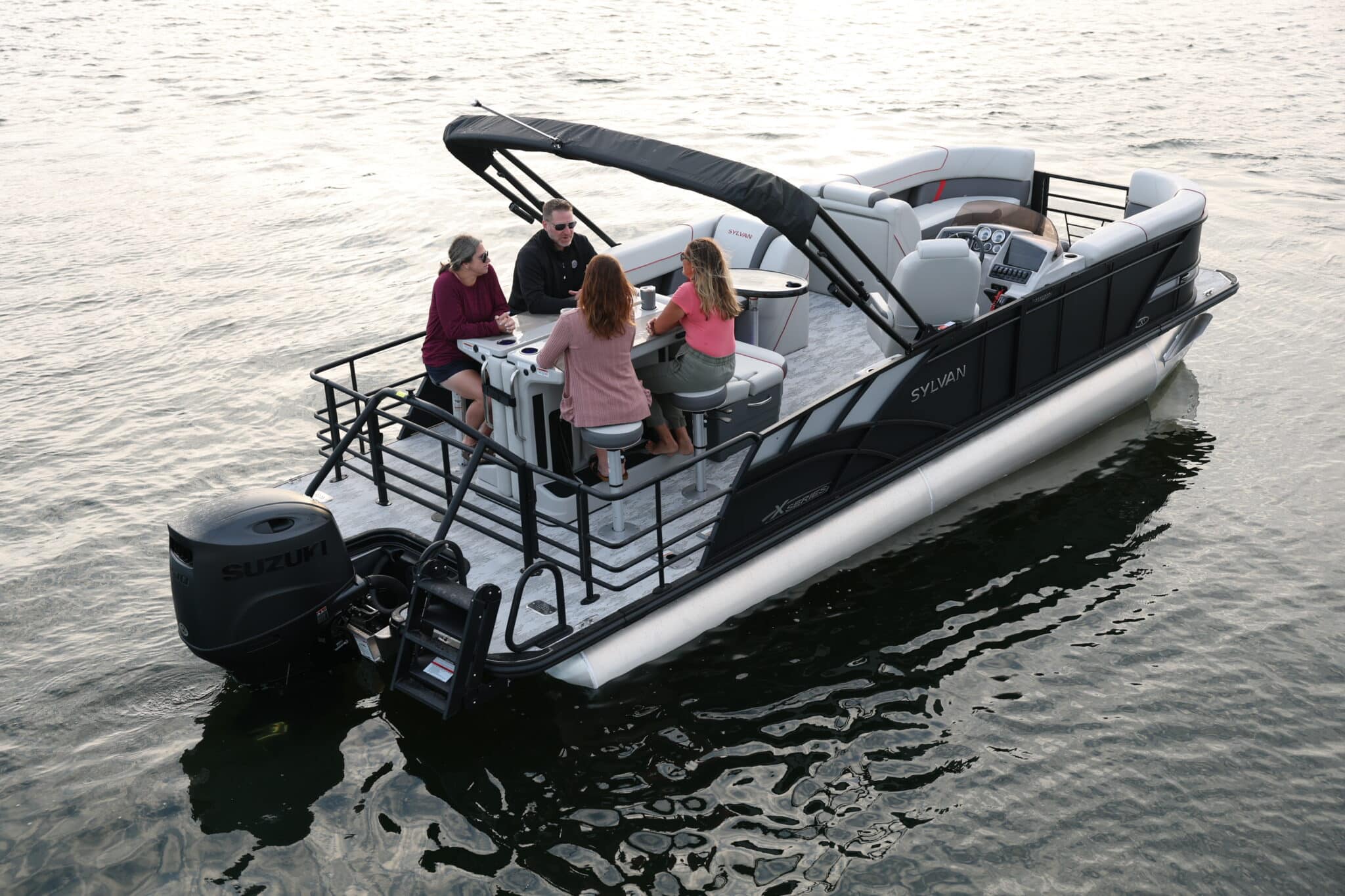 The Sylvan X-Series DLZ features a convertible bar that transforms into a rear-facing lounge with a spacious bed, offering the perfect combination for any outing. Entertain with the 4-person bar and cupholders, then effortlessly switch to a relaxing lounge, giving you flexibility, comfort, and fun all in one layout.